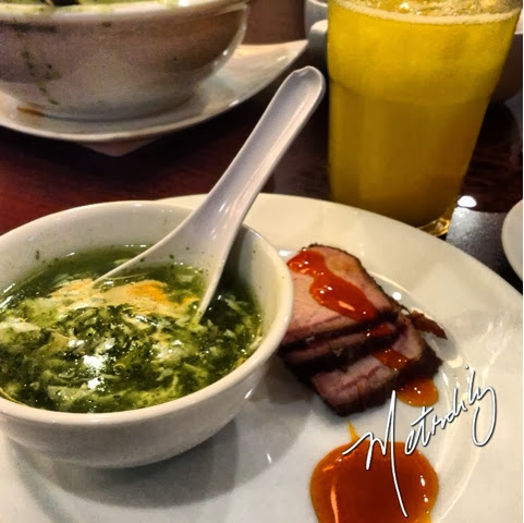 The food came quickly, hot and fresh - I was not keeping track but it felt like 15 minutes -although I spent some more time arranging the food to take pictures (not quite that hungry, I guess. Hehe!) The soup was rich without being salty. Aside from the pureed spinach which gives the soup its color, it also had white vermicelli-like noodles, shrimp and bits of some sort of seafood I could not quite place, but it was comfort food, all right. Their asado was quite tasty, dry, with a slight smoked flavor that is a bit different from the asado I expected from a Chinese restaurant. The asado was served in a wide plate with garnish and a side of sweet-and-sour sauce. We ate asado with hot white rice served in individual bowls.